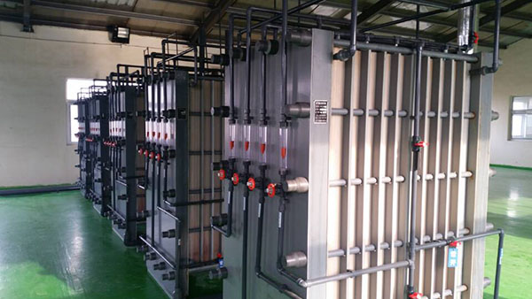 該裝置是由一定數量的膜組成的一系列結構單元;其中每個單元有一張陽離子均相膜隔開成滲析室和擴散室,采用逆流操作,在陽離子均相膜的兩側分別通入廢堿液及接受液(自來水)時,廢堿液側的堿及其鹽的濃度遠高于水的一側,根據擴散滲析原理,由于濃度梯度的存在,廢堿及其鹽類有向擴散室滲透的趨勢,但膜對陽離子具有選擇透過性,故在濃度差的作用下,廢堿側的陽離子被吸引而順利地透過膜孔道進入水的一側。同時根據電中性要求,也會夾帶陰離子,由于OH-的水化半徑比較小,電荷較少;而其他陰離子的水化半徑較大,電荷較多,因此OH-會優先通過膜,這樣廢液中旳堿就會被分離出來。